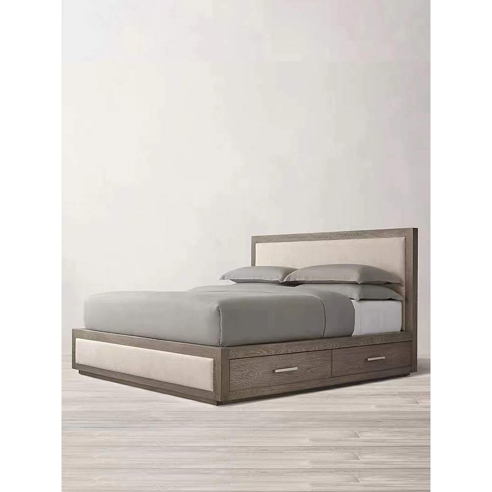 RH实木床美式双人婚床1.8米软靠抽屉储物主卧床法式橡木做旧家具