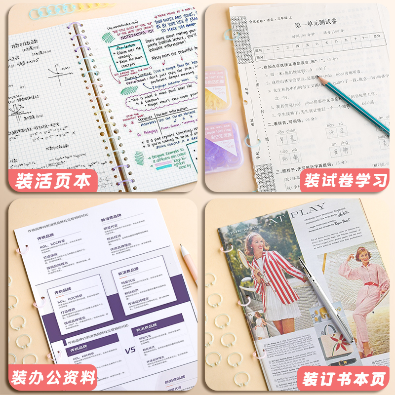 透明彩色活页圈活页扣环夹环装订圈塑料环扣书圈卡圈开口可拆卸装订环卡片成册字卡圆形收纳订书打孔封面相册