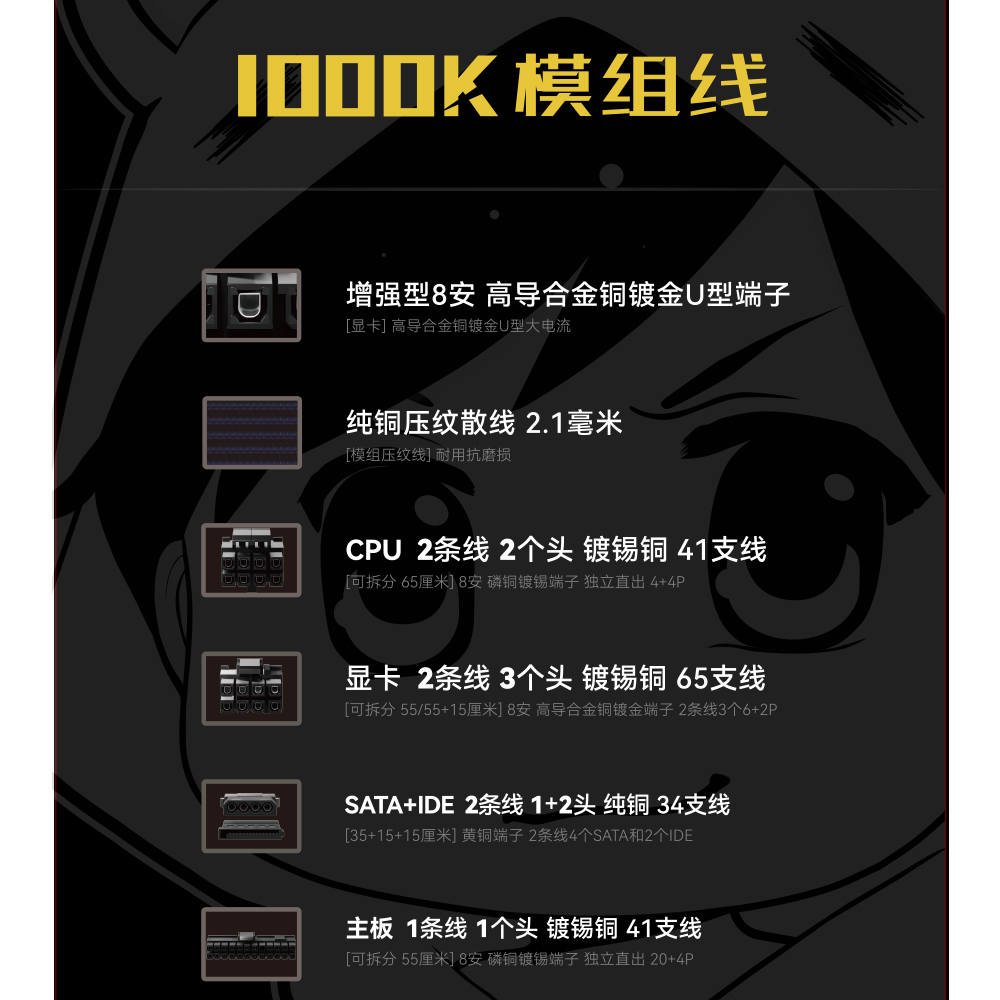 驿晨宇尘雨科技玄武850K+持续1000W峰值1400W+双金牌全模组电源