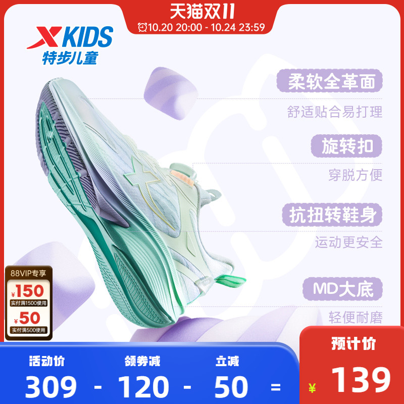 【棉花糖2.0】特步童鞋儿童运动鞋网面透气女童跑步鞋中大童鞋子