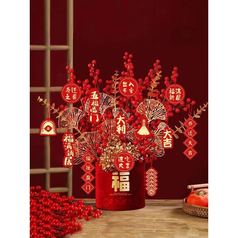新居发财果仿真花卉搬家乔迁之喜福桶套装抱抱桶diy摆件氛围新年