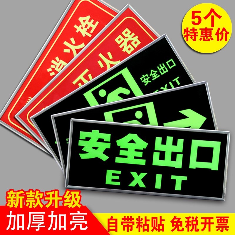安全出口指示牌夜光墙贴地贴标识贴纸免接电楼梯安全通道疏散逃生