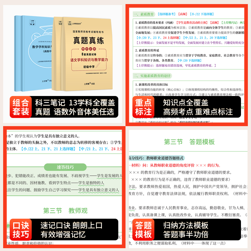 上岸熊中学科目三教资2025下半年考试资料重点三色学霸笔记初中高中综合素质教学知识与能力教师资格证用书教材语文数学英语