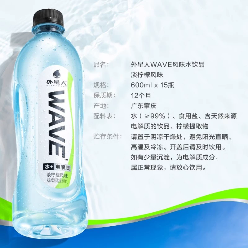 外星人WAVE淡柠檬风味600ml*15瓶装整件运动补水风味电解质饮料