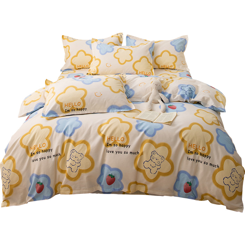 无印良品全棉四件套学生宿舍纯棉卡通儿童被套床单三件套床上用品