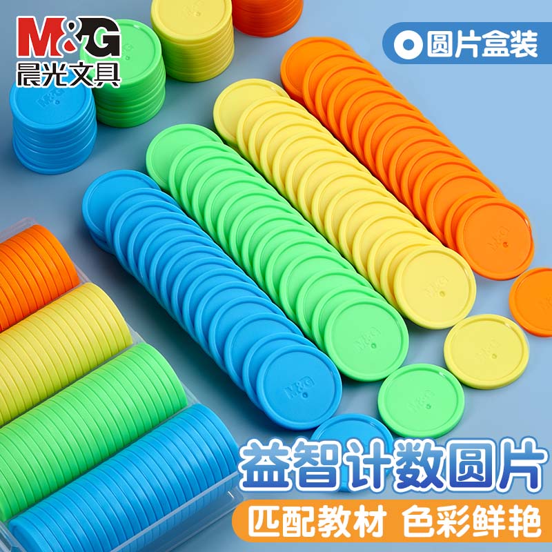 晨光计数圆片100片盒装教学币筹码币无面值一二年级小学生数学加减法记数圆片筹码片塑料片幼儿园教具