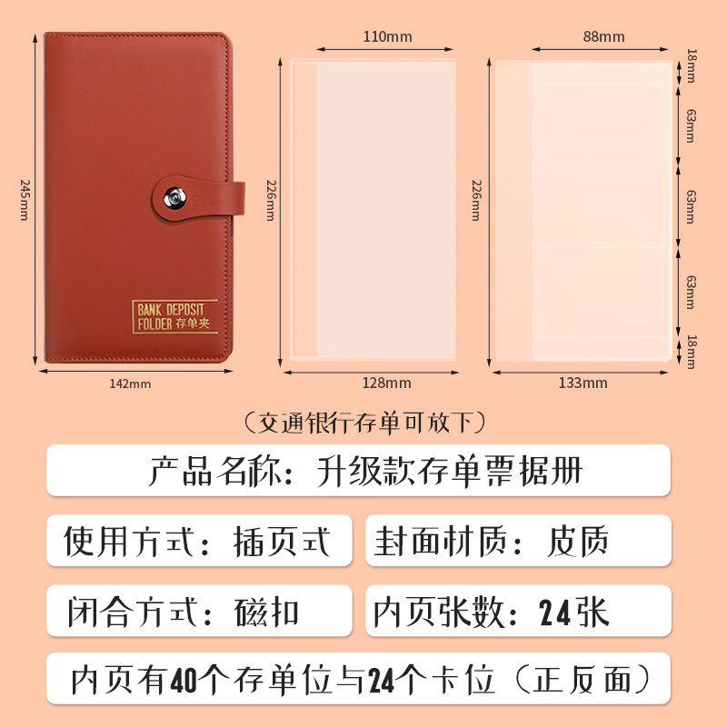 存单收纳本银行定期存款单收集册票据收纳支票夹存折本汇票整理册