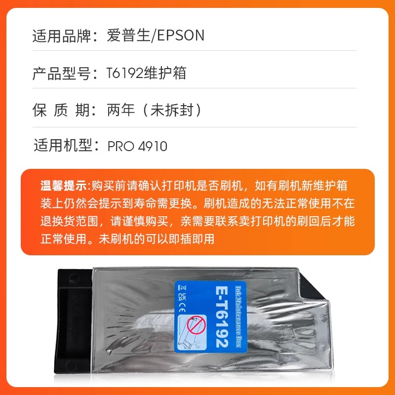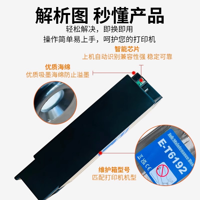适用于爱普生T6192废墨仓 epson pro4910维护箱宽幅照片 pro 4910打印机废墨垫