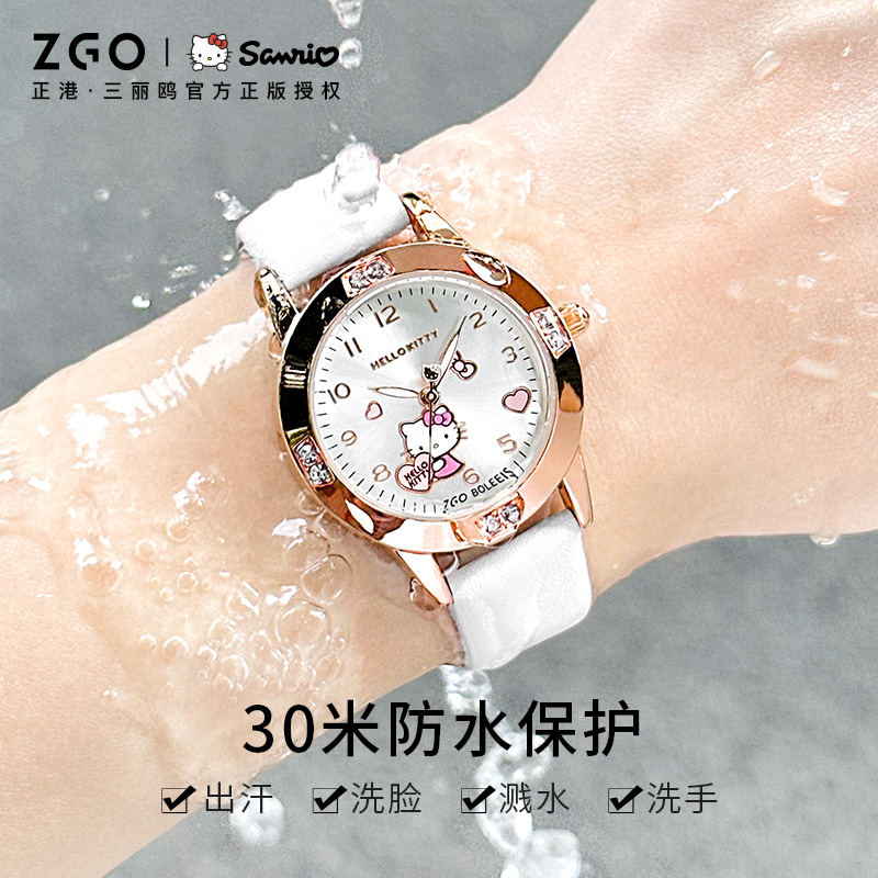 正港ZGOx三丽鸥凯蒂猫儿童手表女孩6到12岁小学生防水学生指针表
