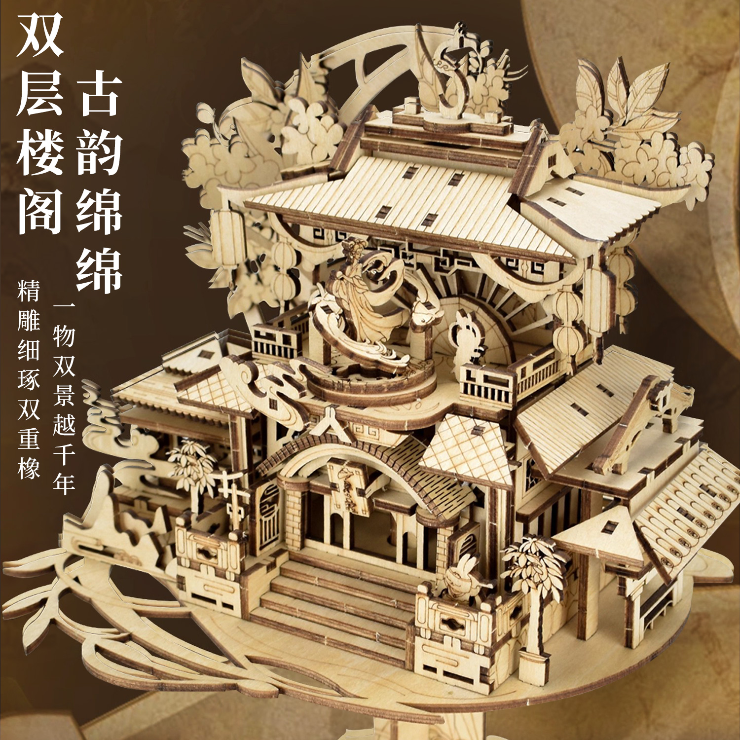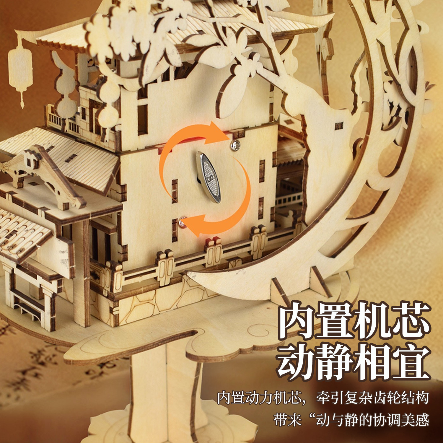 广寒宫八音盒3D立体木制DIY手工音乐盒积木质拼装模型拼图送礼物