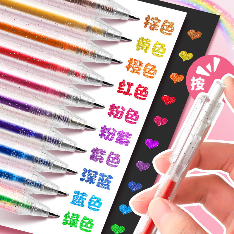 彩色闪光笔啫喱发光亮晶晶流沙银光变色做手账的手帐专用儿童莹光做笔记珠光标记闪亮金属轮廓闪粉水彩笔荧光
