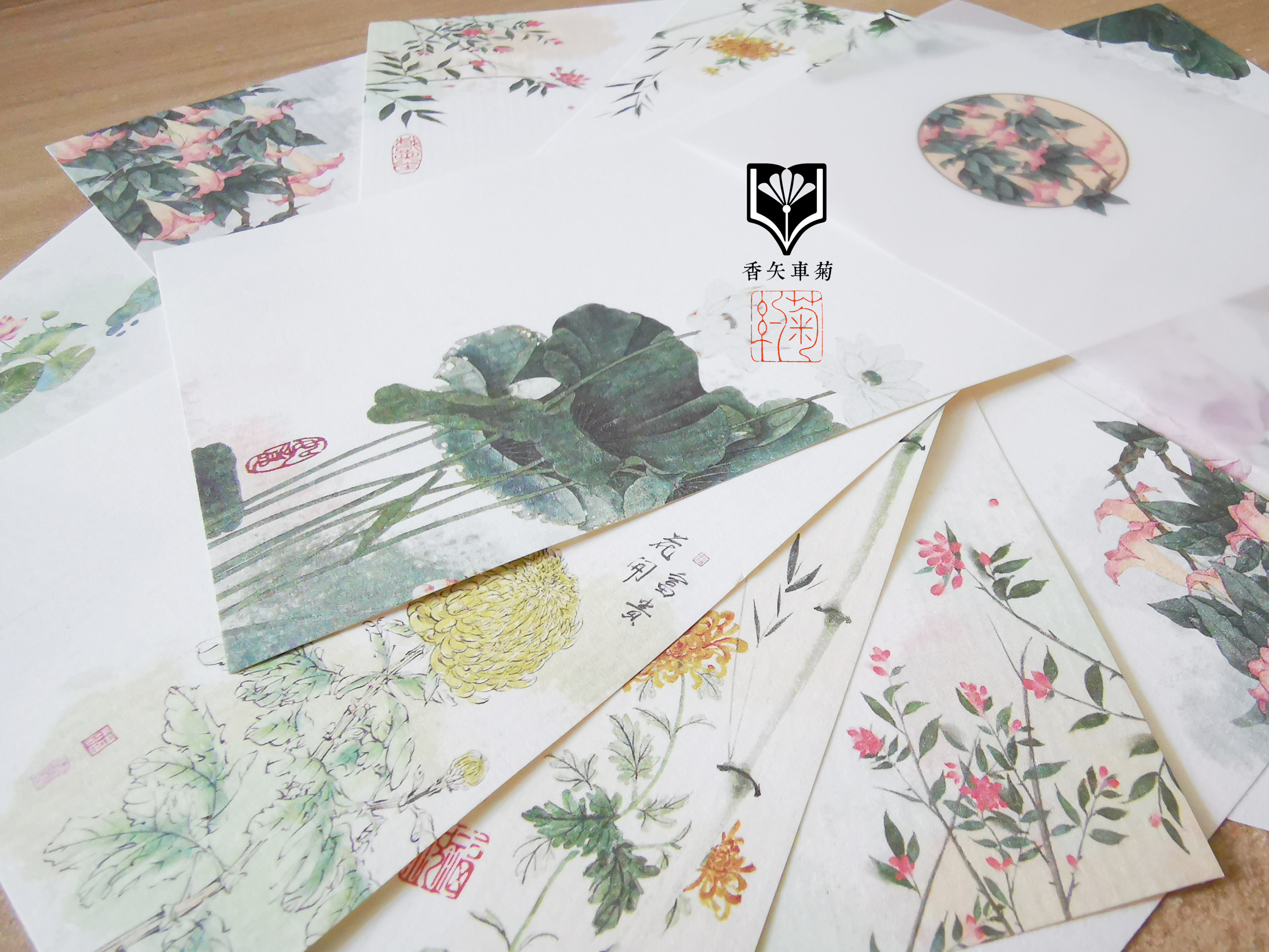 彩墨不洇一笔花笺硬笔作品水纹纸复古美中国风香矢车菊约书房练字
