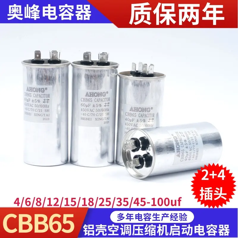 CBB65 2*4或2*2插片铝壳圆柱形空调压缩机启动电容器 现货