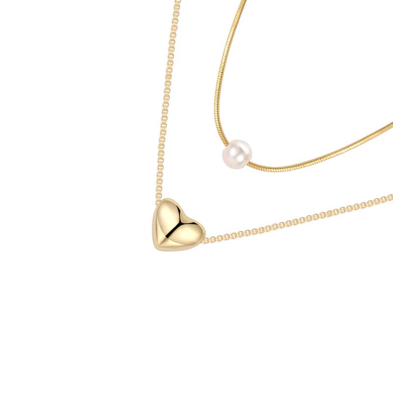 恋时空通勤百搭双层叠戴气质锁骨链爱心仿珍珠吊坠穿搭项链