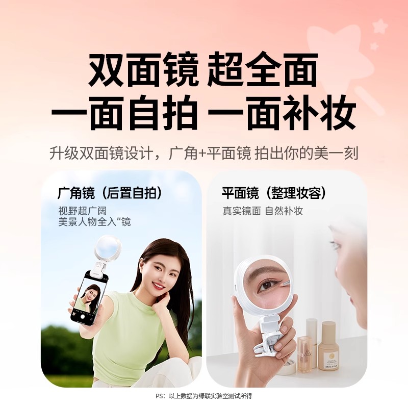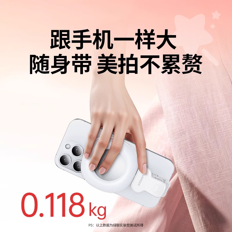 绿联补光灯手机直播打光拍摄专用自拍杆神器手持桌面主播拍照化妆美食户外迷你便携氛围灯后置镜子口袋美颜灯