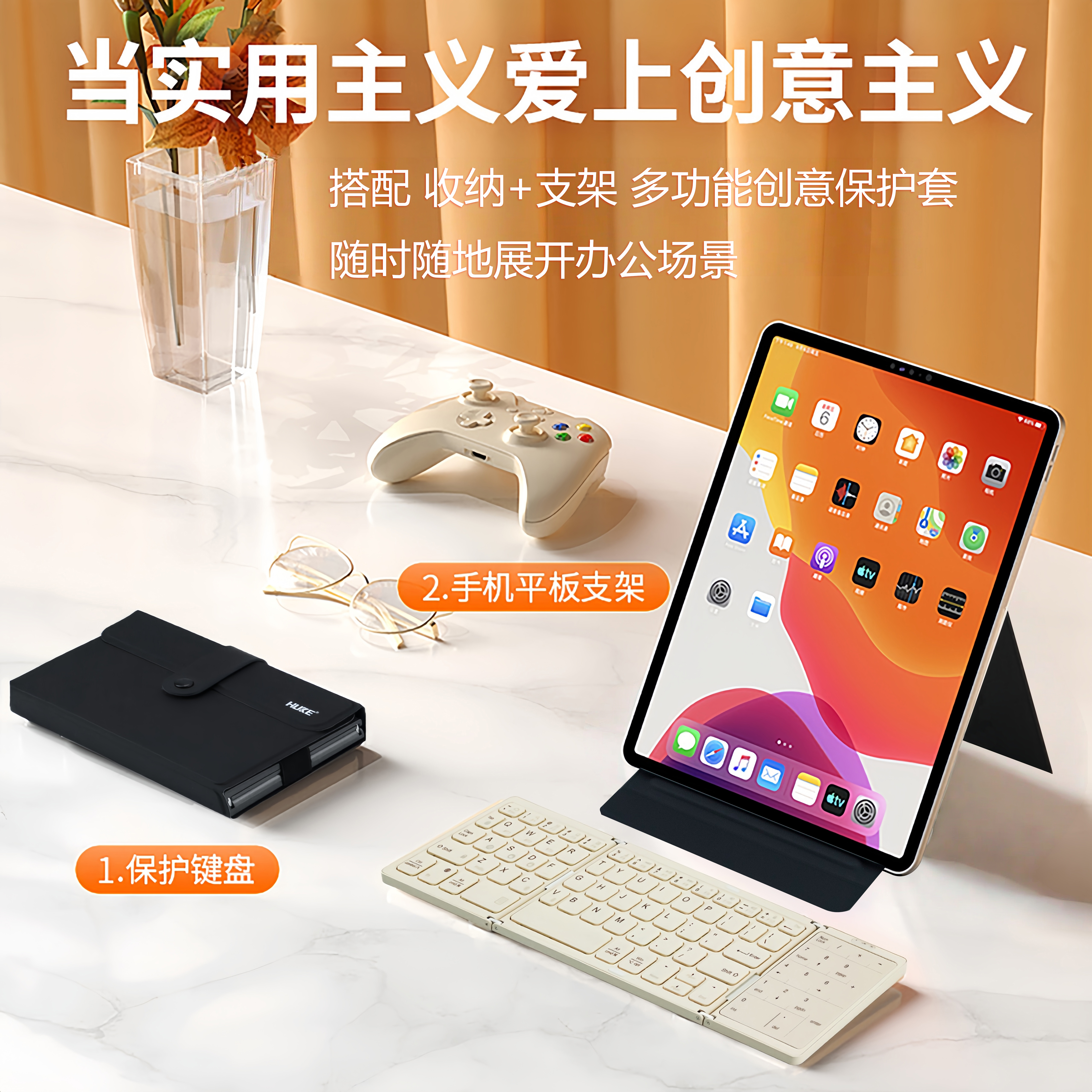 虎克折叠小键盘便携蓝牙无线轻薄适用ipad苹果华为手机平板笔记本