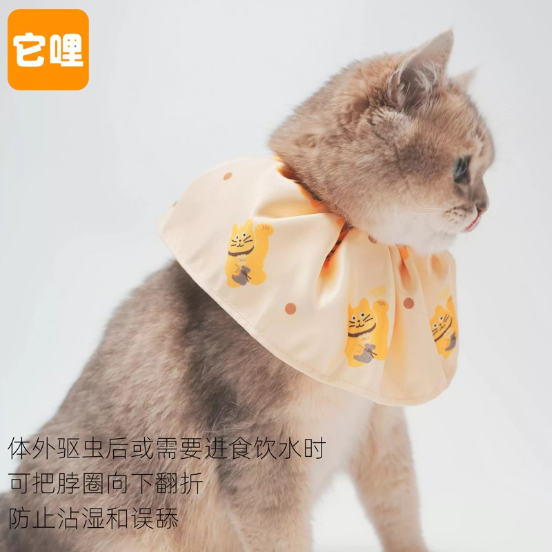 它哩TALI猫狗宠物伊丽莎白圈可爱橘原创招财猫可调节式防抓挠皮肤