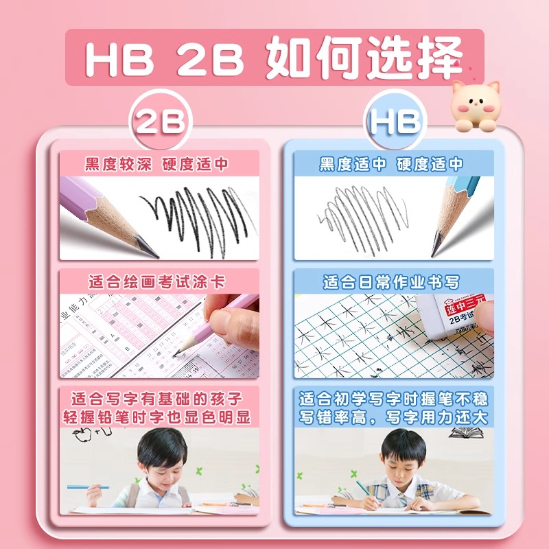 晨光小红杆铅笔2b小学生专用一年级二年级安全无铅毒卷笔刀橡皮六角笔杆易抓握学生考试用答题卡hb木杆涂卡笔