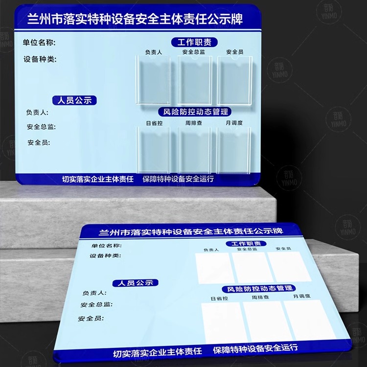 兰州市落实特种设备安全主体责任公示牌工作职责风险防控动态管理设备种类电梯维保标牌广告牌警示牌