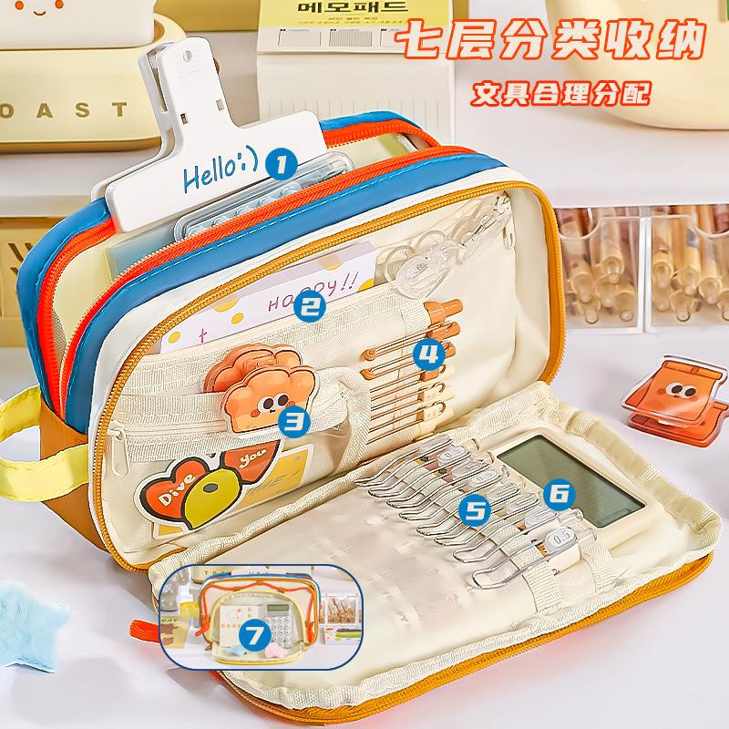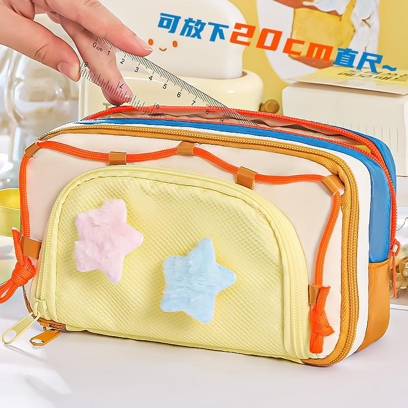 拼色多巴胺星星笔袋多层大容量小众不撞款手提高颜值多功能中小学
