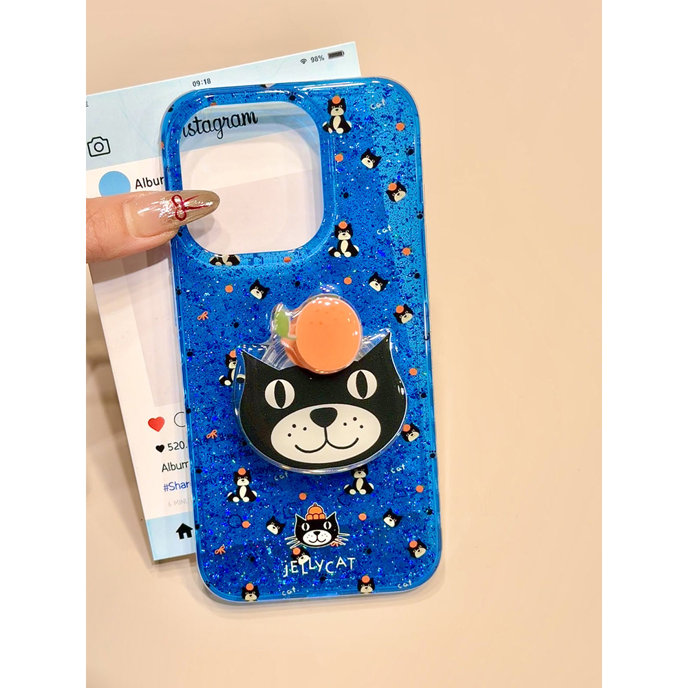 韩风可爱橘子吉利猫支架适用苹果16promax闪粉手机壳15iphone14保护套13双层imd高级感半透明日韩ins风小众