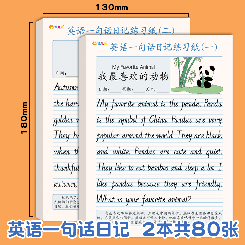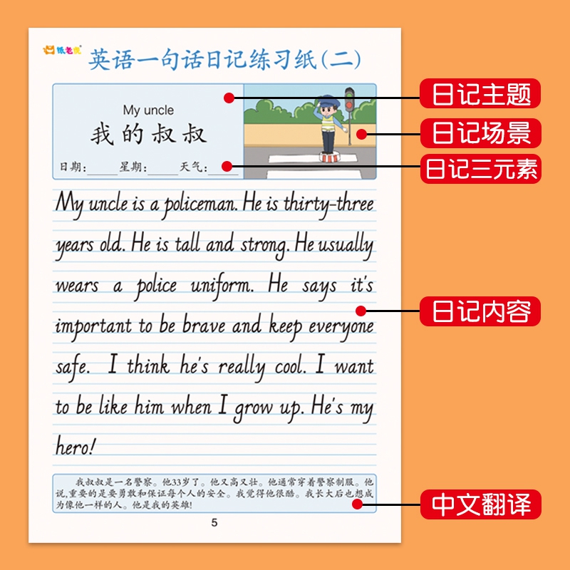 英语一句话日记练习纸小学生看图写话提高写作练字帖专用一二三四五年级初中生定位书写纸本每日一练思维训练