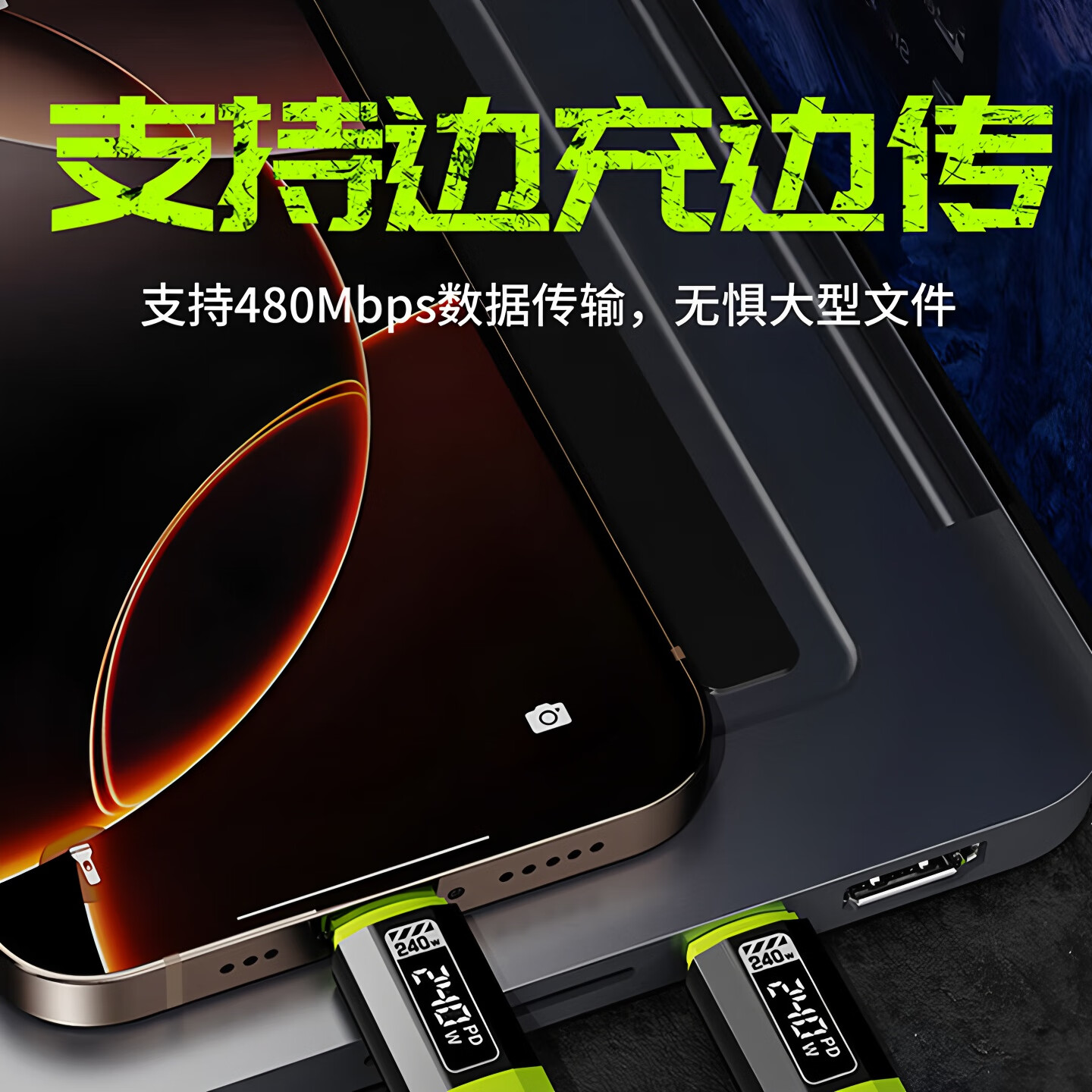 昊微双头Type-c数据线240W超级闪充双向pd口手机10A快充电线加粗硅胶适用华为P80荣耀GT苹果16/17传输加长3米