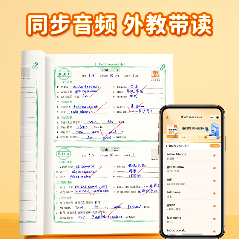 【易蓓】初中英语同步人教版课本睡前默写七八九年级单词语法专项训练知识清单英语练习考点知识预习复习资料书必背基础知识默写本