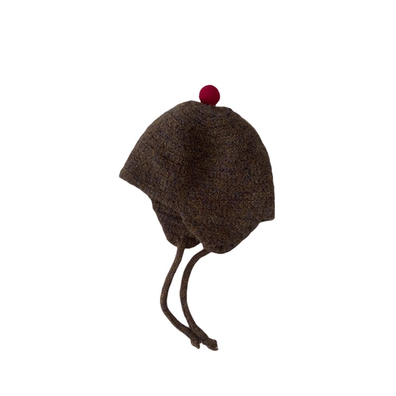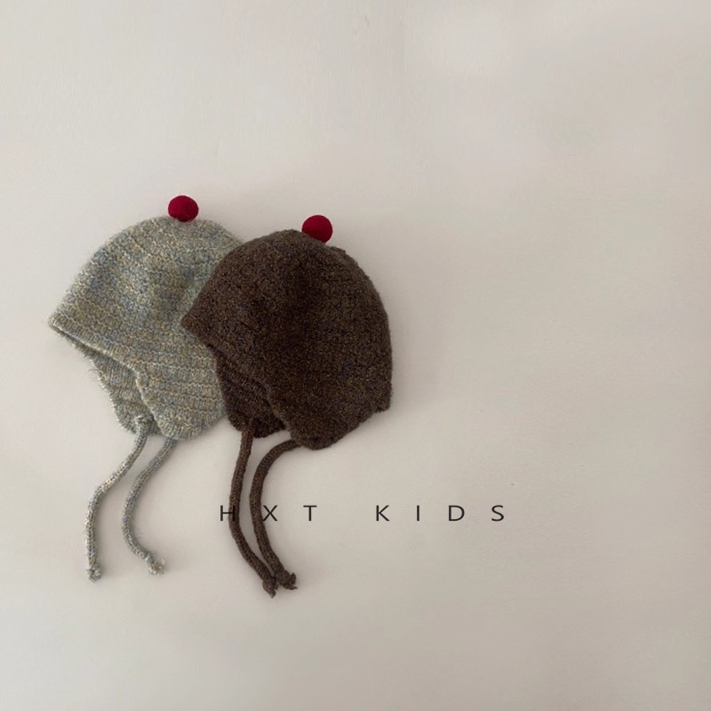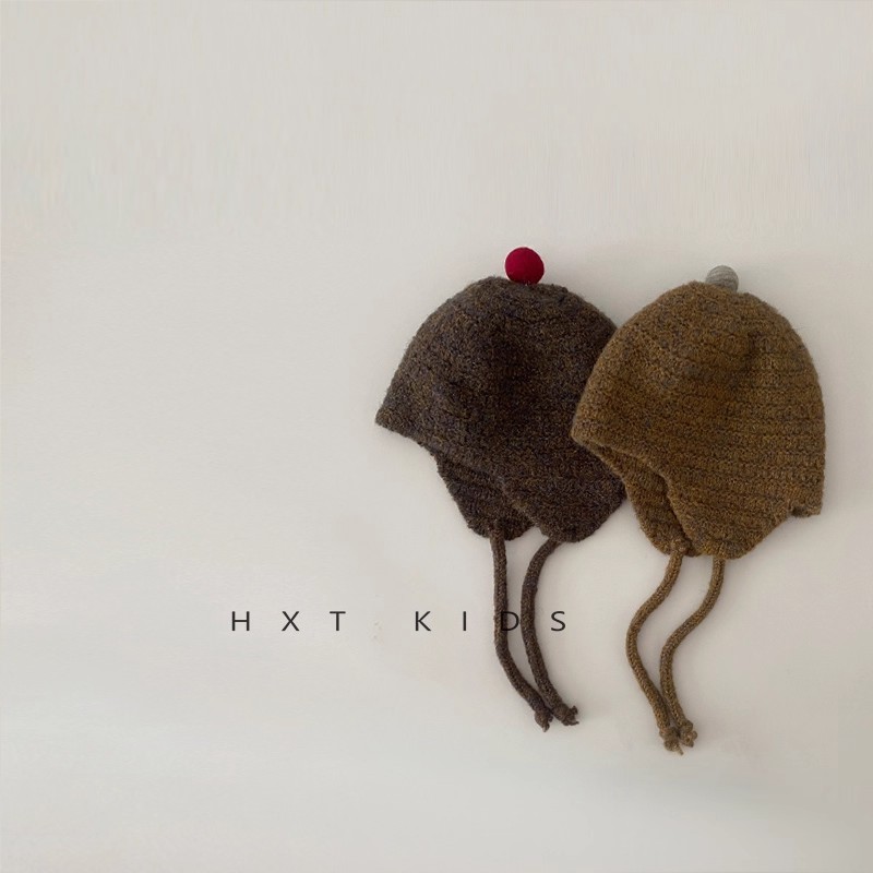 儿童护耳帽超萌可爱帽顶小球纯色系带毛线帽秋冬季薄款针织帽子潮