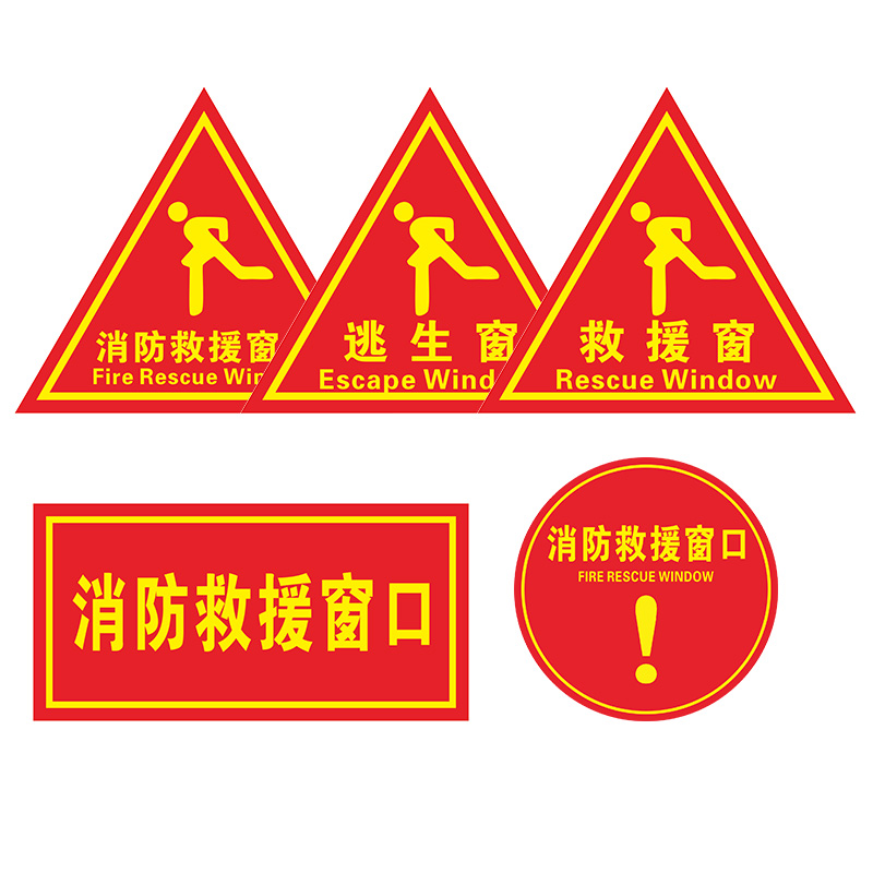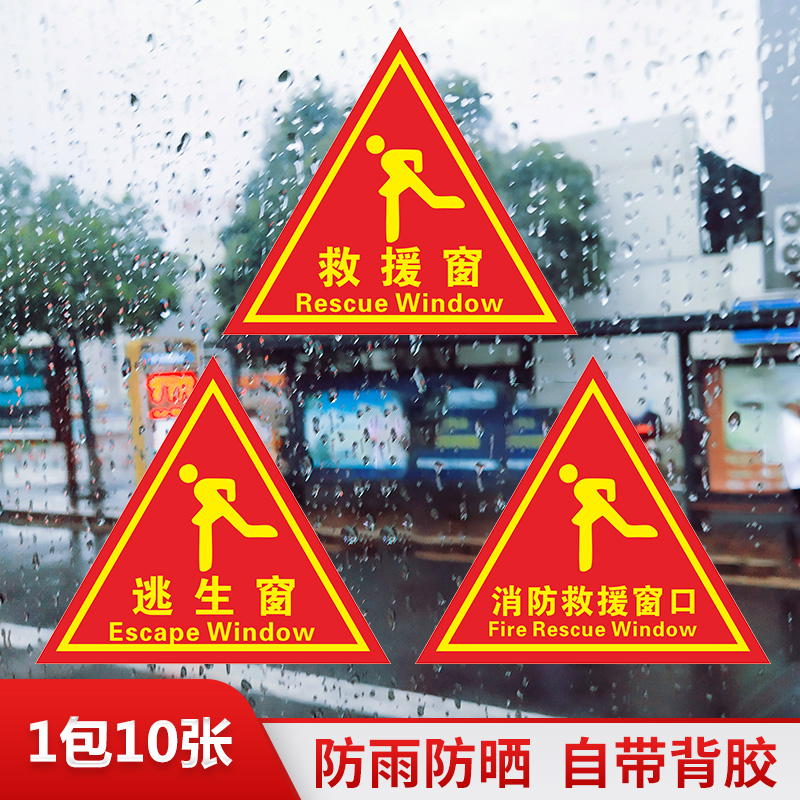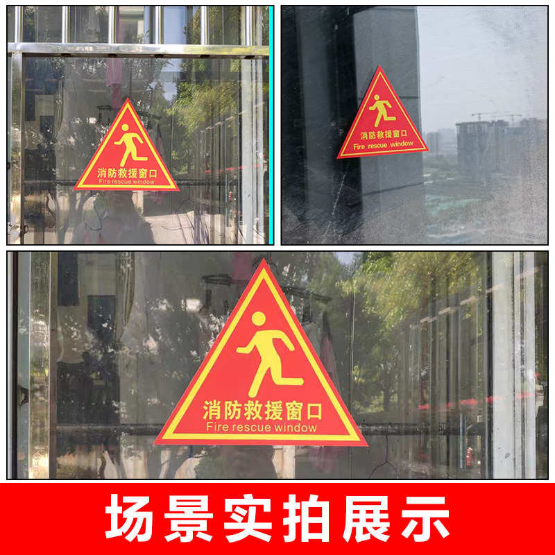 消防救援窗口标识贴指示标示贴纸紧急疏散标志提示贴三角形安全警示牌玻璃逃生窗指示防水防晒自粘贴定制