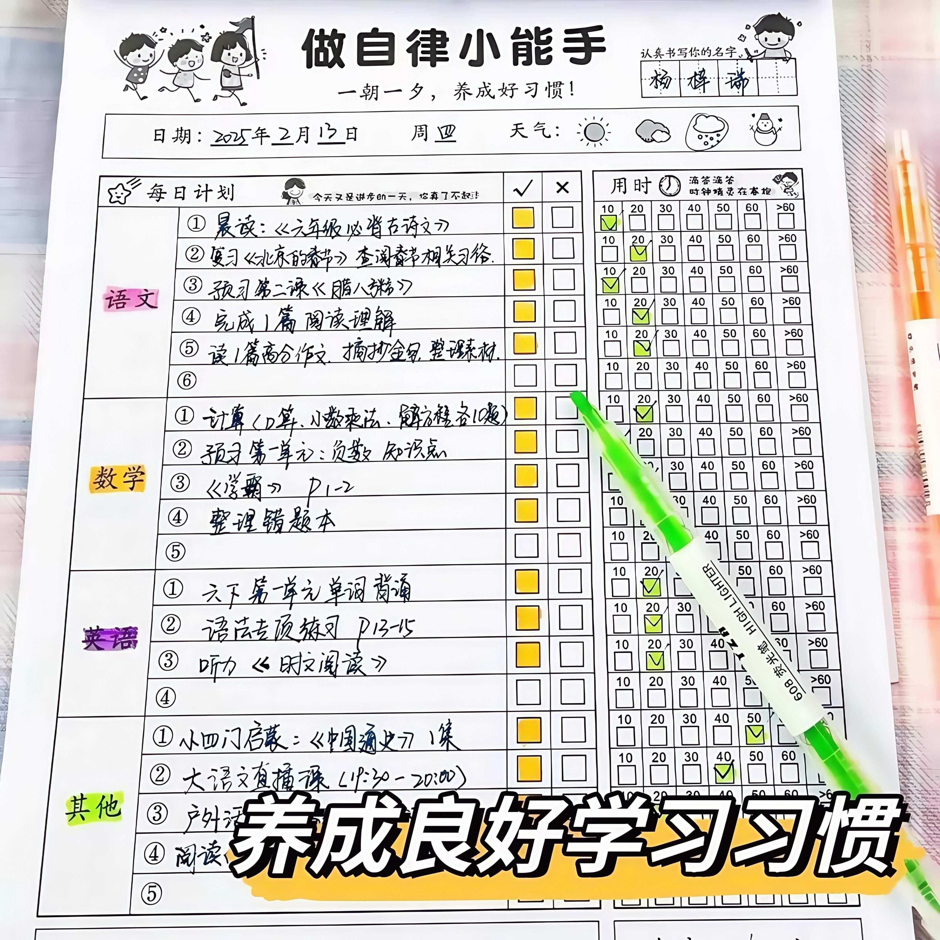 小学生作业自律本每日打卡本儿童自律学习计划表生好习惯养成本每日记录表时间规划养成任务作业周计划完成