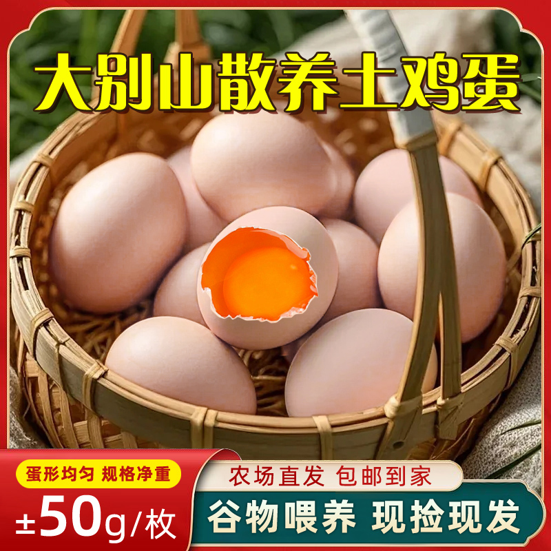 土鸡蛋正宗农家散养湖北大别山林下跑山鸡蛋新鲜谷物蛋农场上门