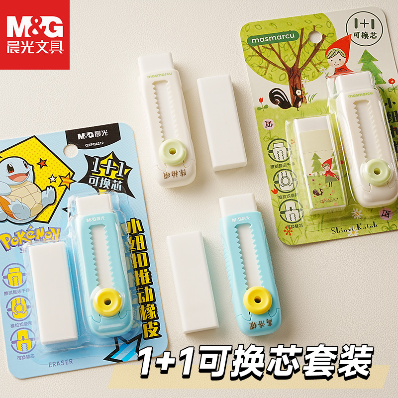 【免费刻名字】晨光推动橡皮套装一年级小学生专用清洁橡皮擦清洁少屑皮屑成条卡通推推橡皮可爱文具礼物奖品