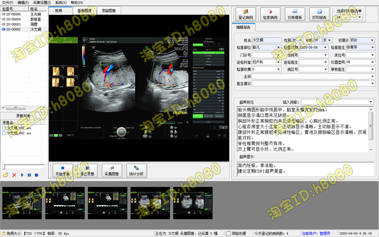 淳仁超声工作站黑白B超软件彩超软件+标清采集卡+连接线全套包邮