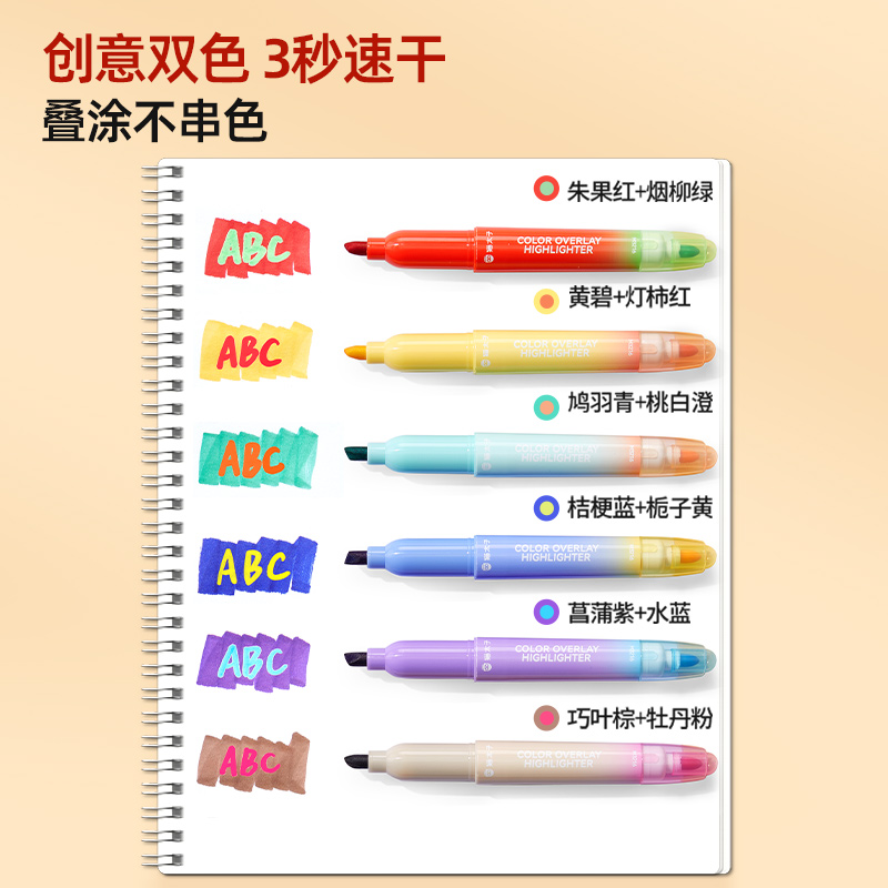 点石三角杆荧光笔12色记号笔简约学生划重点标记笔套装柔色手账笔