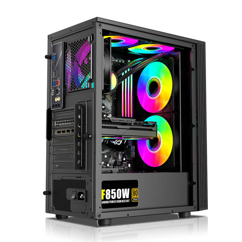 跨境游戏家用办公全景玻璃侧透全透主机机箱台式电脑机箱matx主板