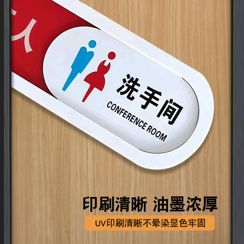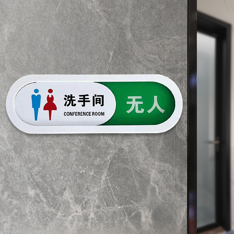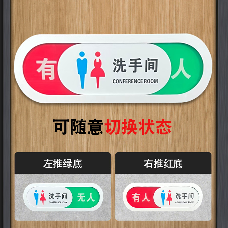 状态切换亚克力厕所洗手间无人有人没人温馨提示牌男女洗手间可滑动牌子门牌挂牌贴牌使用空闲中挂贴牌标识牌