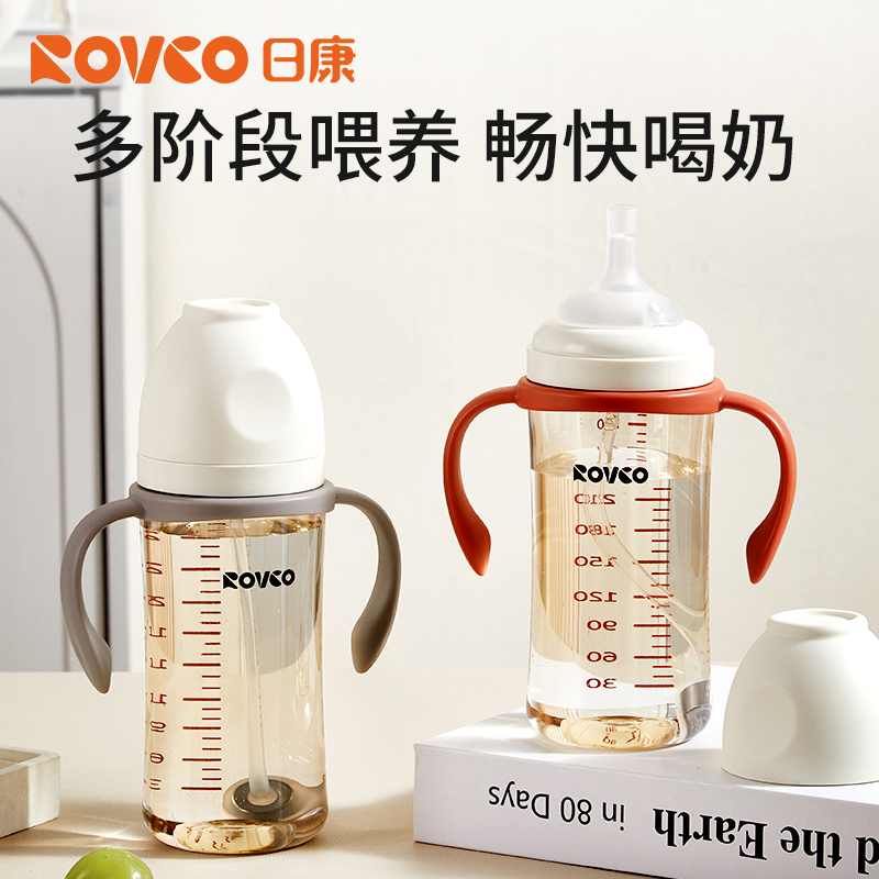 日康吸管奶瓶婴儿6个月以上1岁宝宝学饮PPSU水杯多阶段精致喝奶