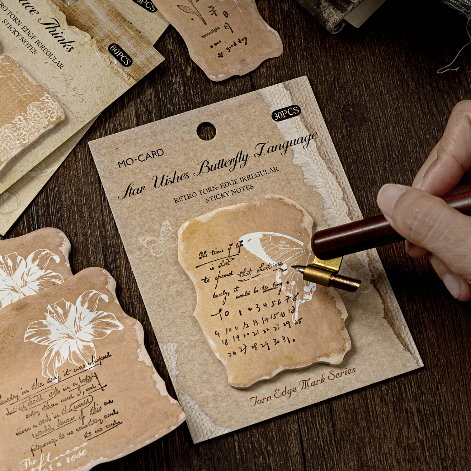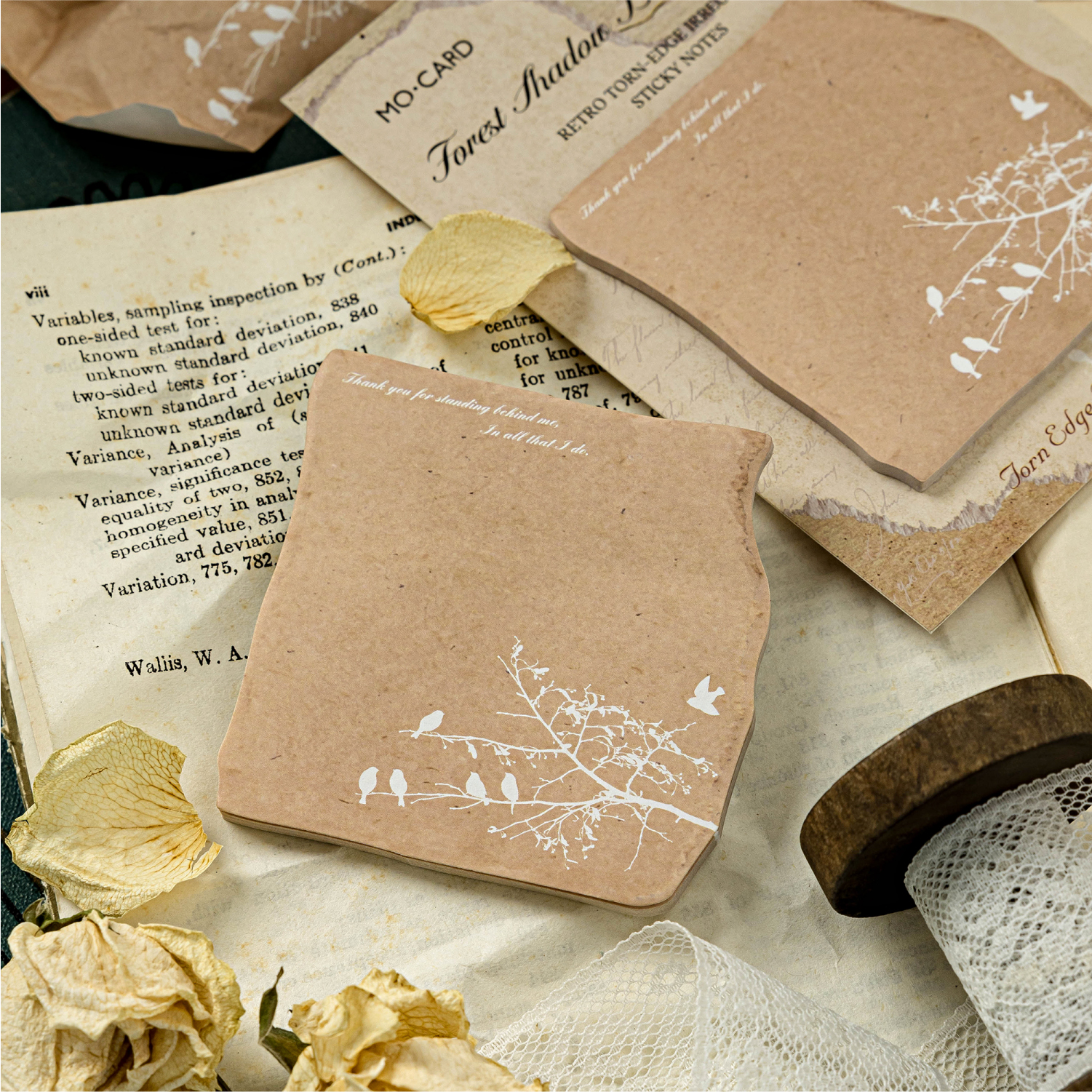 陌墨撕边印记异形便利贴 ins复古棕花草花束纽扣打底创意手帐留言可书写粘贴学习办公备忘录素材便签贴