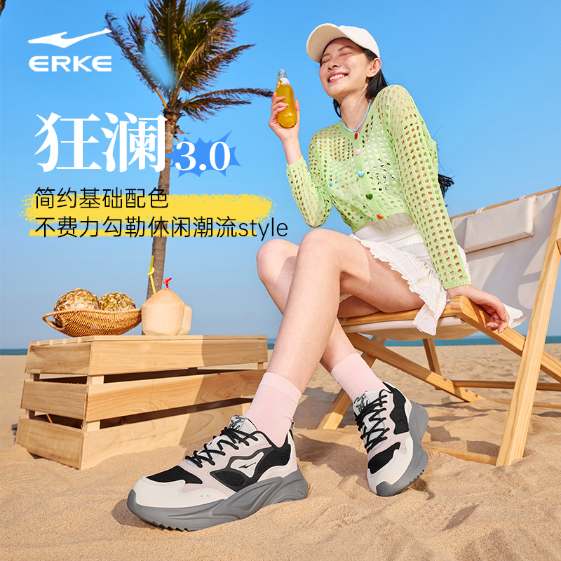 鸿星尔克狂澜3运动鞋女鞋秋季新款网面透气减震休闲鞋百搭老爹鞋