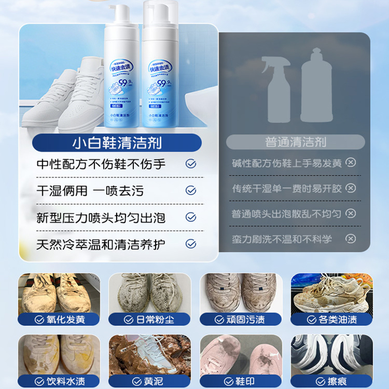 新款小白鞋喷喷净小白鞋清洗神器强力去污免水洗刷鞋泡沫清洁剂