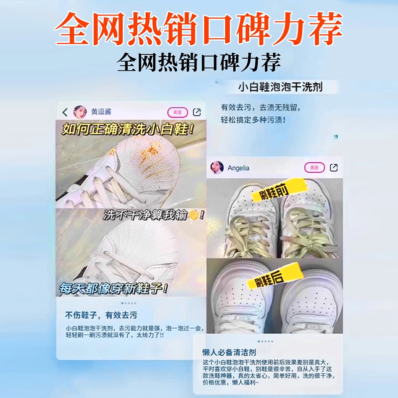 小白鞋清洁剂去污增白去黄洗鞋神器免洗刷鞋干洗泡泡清洗剂擦鞋子