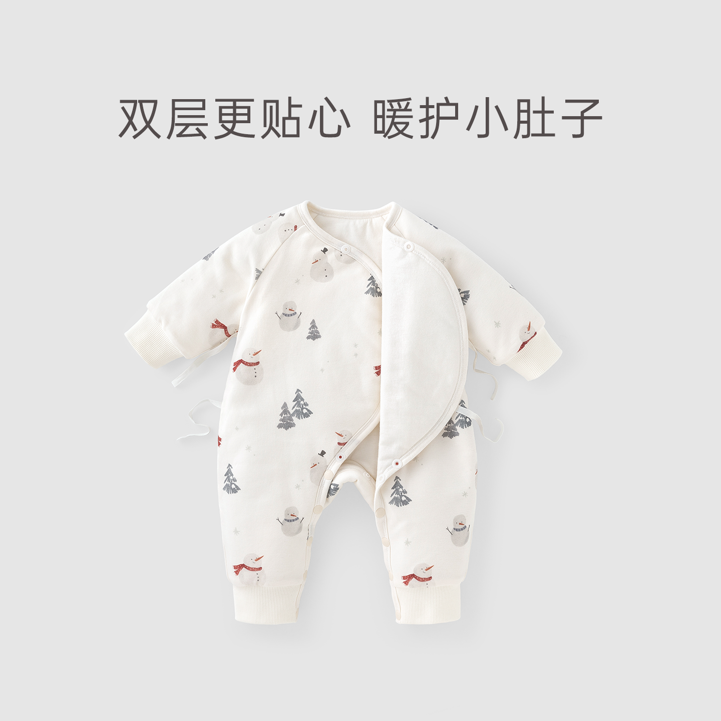 美妙音阶夹棉婴儿连体衣保暖春秋款新生儿衣服宝宝哈衣加厚秋冬季
