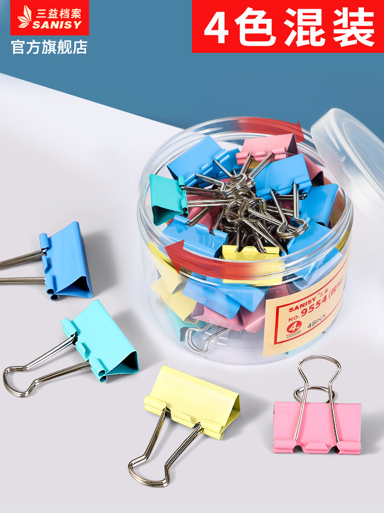 彩色长尾夹办公用品收纳大中小号批发燕尾夹混装32mm夹子文具多功能凤尾夹票据固定书夹子试卷夹1519325060mm
