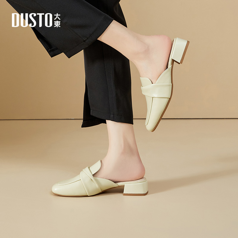 大东穆勒鞋女鞋2025夏季新款优雅粗跟中跟方头套脚结构变化X0022
