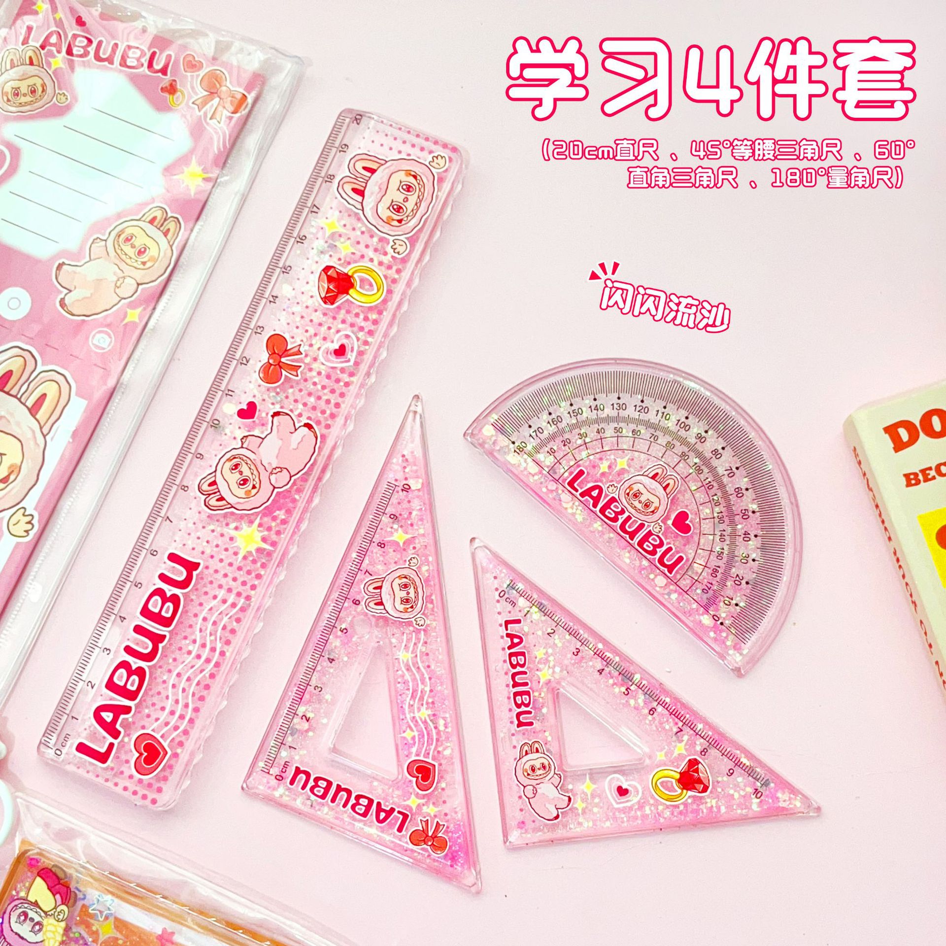 拉布布四件套尺子亚克力入油流沙尺子套装卡通直尺绘画办公学生尺