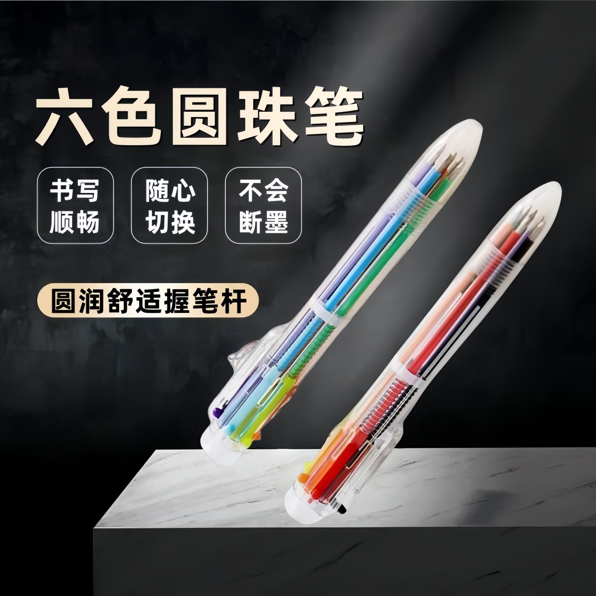 多色彩芯圆珠笔6合一六色圆珠笔按压式原子笔学生涂鸦绘画标记
