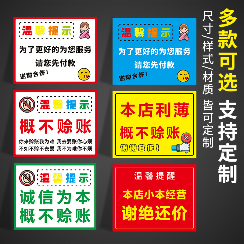 诚信为本温馨提示牌免开尊口谢绝还价请您先付款标识挂牌墙贴定制