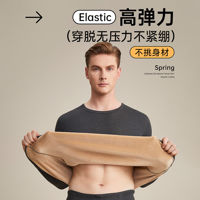 雅鹿保暖内衣男士加绒加厚秋衣秋裤套装男款德绒羊绒发热防寒冬季