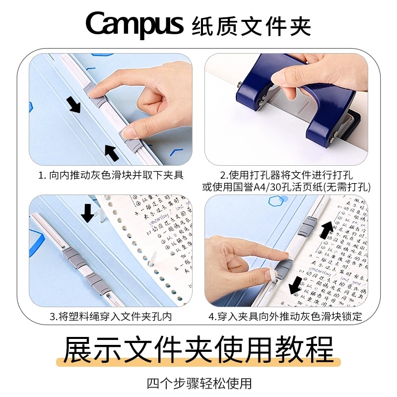 kokuyo国誉campus硬纸质可爱卡通动物图案文件夹文件合同整理分类文件夹简易收纳资料夹单片两页夹彩色A4